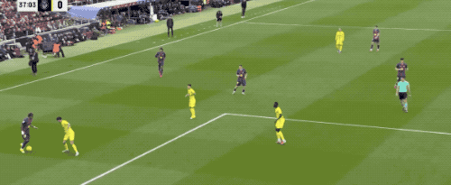 第48分钟,比利亚雷亚尔的角球制造威胁,由于拉菲尼亚拖在了后面,盖耶的进球并不越位。
