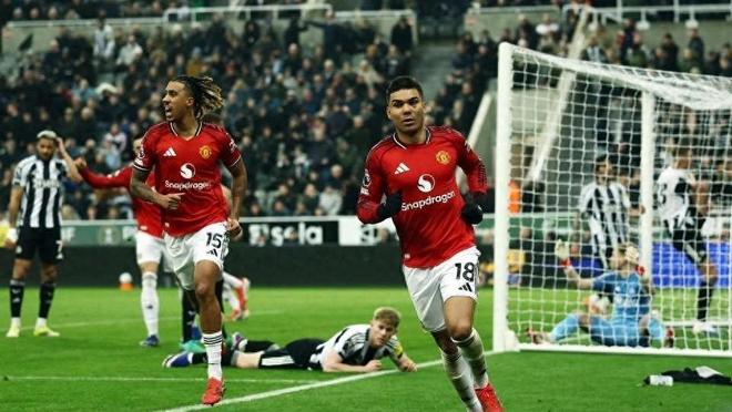 然而,好景不长,剧情瞬间反转。补时第6分钟,布鲁诺·费尔南德斯抢断后交给卡塞米罗,但这位巴西后腰处理球过于拖沓,被纽卡断球后迅速发动反击。安东尼·戈登从左路长驱直入杀入禁区,费尔南德斯回防不慎将其放倒,裁判果断判罚点球。