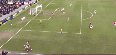 第41分钟,枪手终于打破僵局,马杜埃凯的射门被扑出,马丁内利虚晃一枪将球传出,阿杜埃凯左脚兜射,皮球直挂死角。