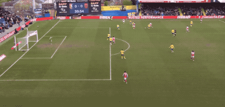 曼斯菲尔德在主场观众的呐喊声中,大举压上,曾经征战英超并取得进球的罗伯茨连续假动作后,在禁区线上选择吊射,凯帕稳稳将球拿到。